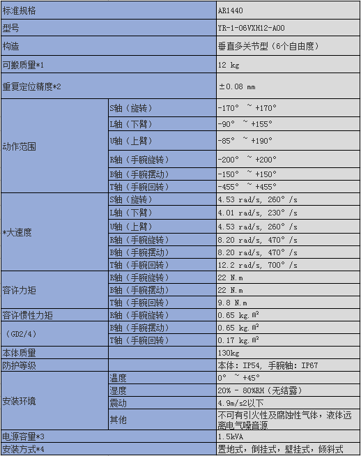 *4:壁掛式,傾斜式安裝時,S軸的動作會有限制。(注)本表是以SI單位系為記載。